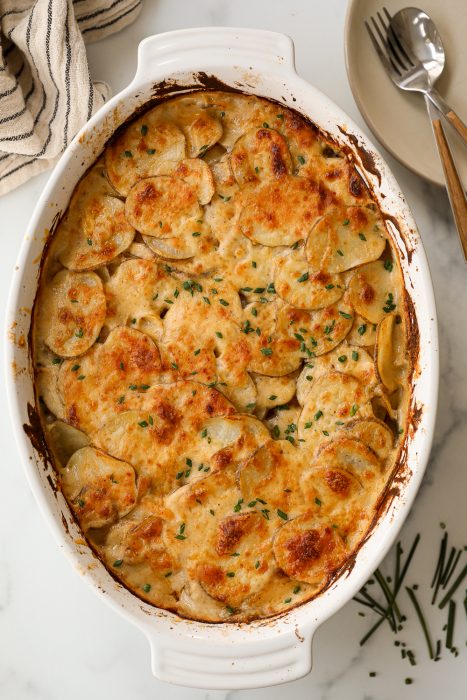 Creamy, cheesy scalloped potatoes made from scratch — the perfect comfort-food side dish for any holiday. Simple ingredients, rich flavor, and melt-in-your-mouth tender layers every time.